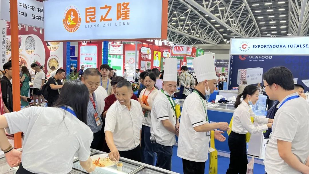 豐富的產(chǎn)品種類,水產(chǎn)、面點(diǎn)、蝦貝、蔬果、肉禽.....吸引了眾多來(lái)自全國(guó)各地的經(jīng)銷商和餐飲客戶的目光。其中,國(guó)聯(lián)漢蝦傳奇、灃運(yùn)鮑魚、小龍魚松鼠金桂魚、東海扁蟹、小龍魚黑虎蝦滑、口口可芝麻藕條等成了當(dāng)之無(wú)愧的明星產(chǎn)品。