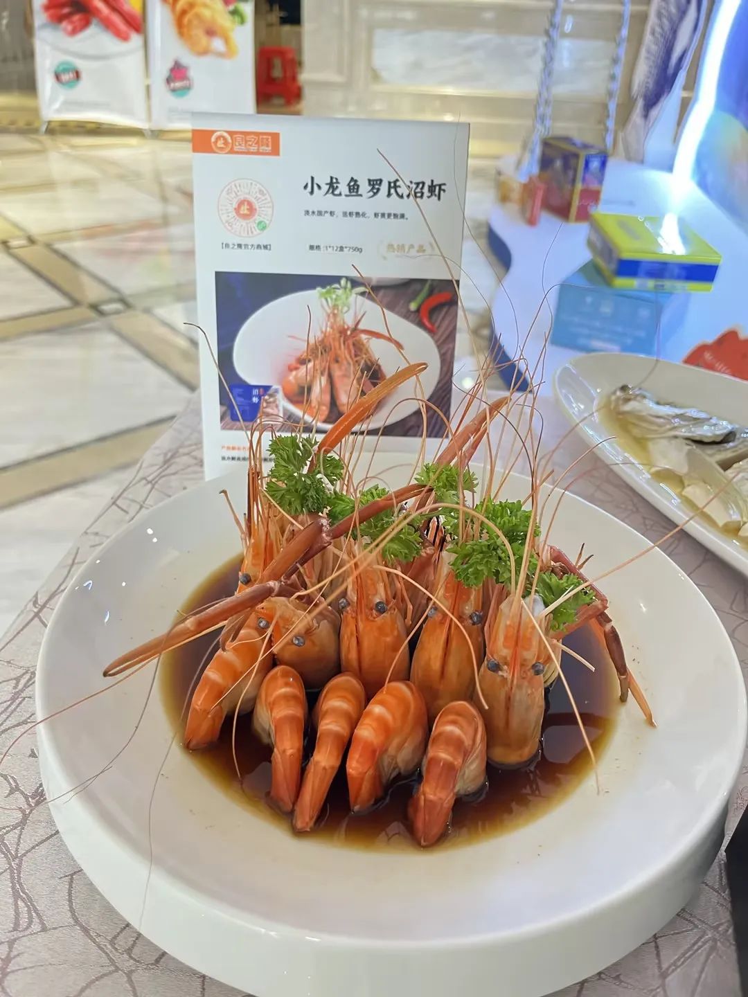 開(kāi)展第一天。展位就吸引了源源不斷的品鑒客戶,超百位專(zhuān)業(yè)意向餐飲客戶登記,百余款陳列產(chǎn)品及10+品鑒產(chǎn)品同時(shí)發(fā)力,展位單日多個(gè)時(shí)段人氣爆滿。國(guó)聯(lián)4大漢蝦系列(漢蝦傳奇、焗漢蝦、香酥漢蝦、水煮漢蝦)、灃運(yùn)鮑魚(yú)、東海扁蟹、小龍魚(yú)松鼠金桂魚(yú)、小八爪&墨魚(yú)仔等爆款產(chǎn)品得到了北方餐飲市場(chǎng)客戶的高度認(rèn)可。
