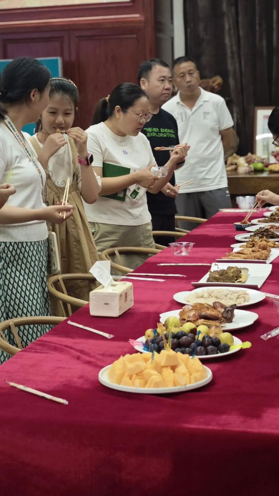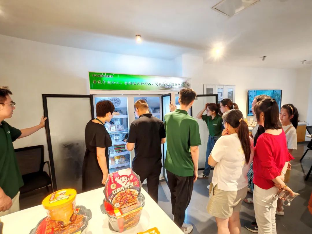 為更好的了解產(chǎn)品,游學(xué)團(tuán)在公司領(lǐng)導(dǎo)的引導(dǎo)下,來到產(chǎn)品展示間,品嘗多種特色牛肉產(chǎn)品,同時(shí)就產(chǎn)品銷售、客戶服務(wù),以及產(chǎn)品力打造方面,更進(jìn)一步向公司領(lǐng)導(dǎo)和同事請教學(xué)習(xí),獲得了許多有益的啟示。