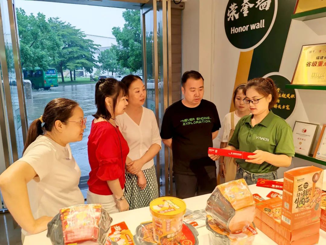 游學(xué)團(tuán)走進(jìn)綠進(jìn)集團(tuán)大樓,首先映入眼簾的是擺放整齊的榮譽(yù)墻,“中國馳名商標(biāo)”、“2022中國預(yù)制菜行業(yè)年度評選”領(lǐng)軍品牌、福建省餐飲烹飪協(xié)會優(yōu)秀伙伴獎(jiǎng)、同安區(qū)龍頭企業(yè)…琳瑯滿目的獎(jiǎng)項(xiàng)讓大家深深震撼。同時(shí),游學(xué)團(tuán)一行還品嘗了綠進(jìn)爆款“金牌牛力骨”“雪花肉”等預(yù)制菜品,并共同探討預(yù)制菜的最新發(fā)展趨勢和市場需求,探尋多維度銷售渠道。